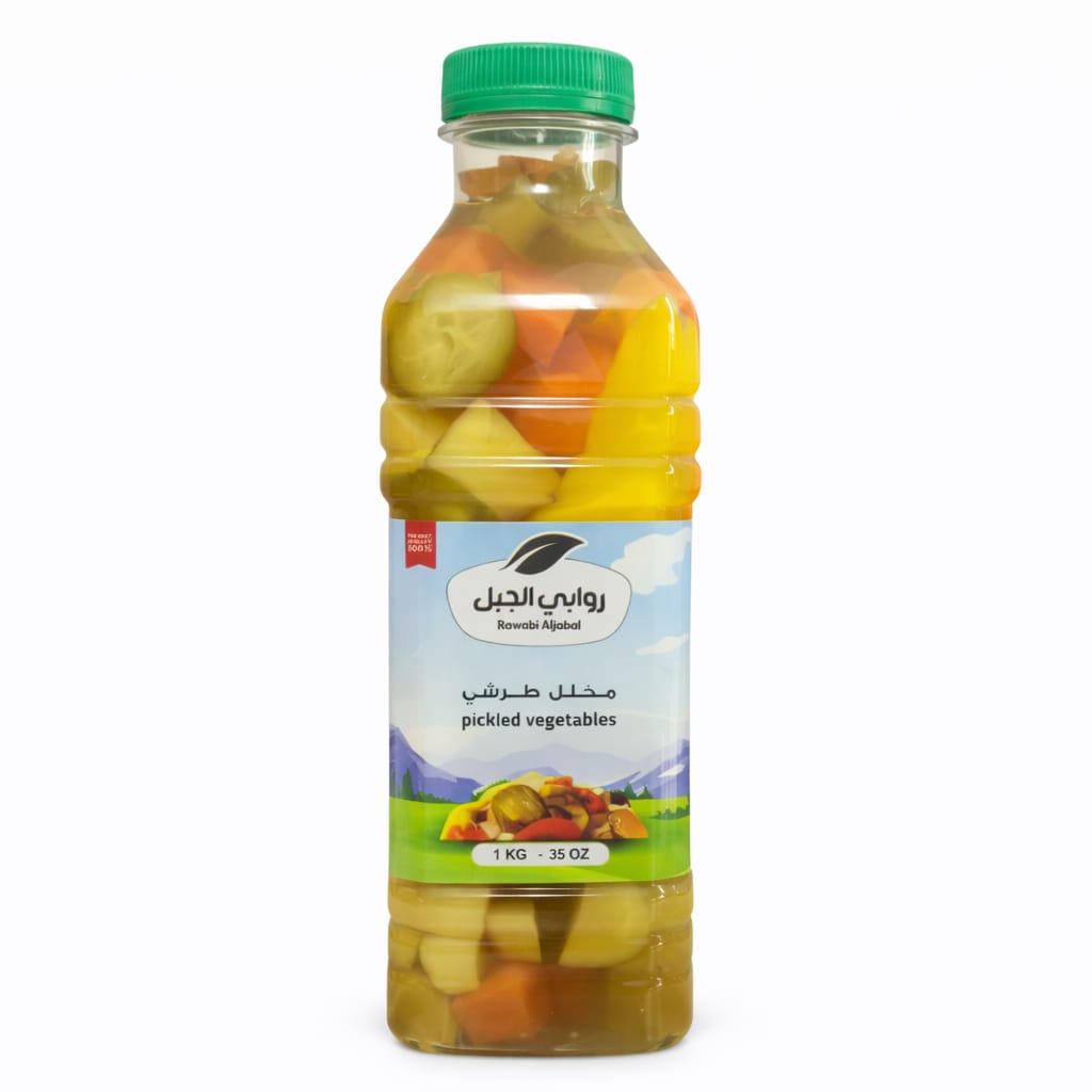 مخلل الطرشي من روابي الجبل هو مزيج غني ومتنوع من الخضار الطازجة المختارة بعناية، مثل الخيار، الجزر، الزهرة، والفليفلة، تم تخليلها وفق وصفة تقليدية تمنحها نكهة متوازنة تجمع بين الحموضة اللذيذة والملوحة الخفيفة.